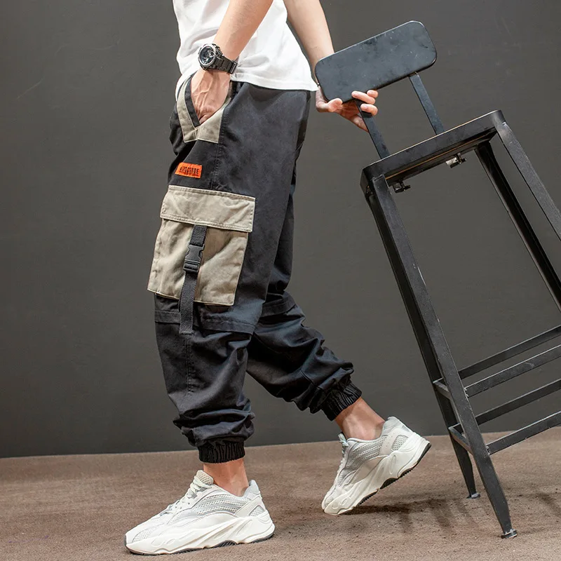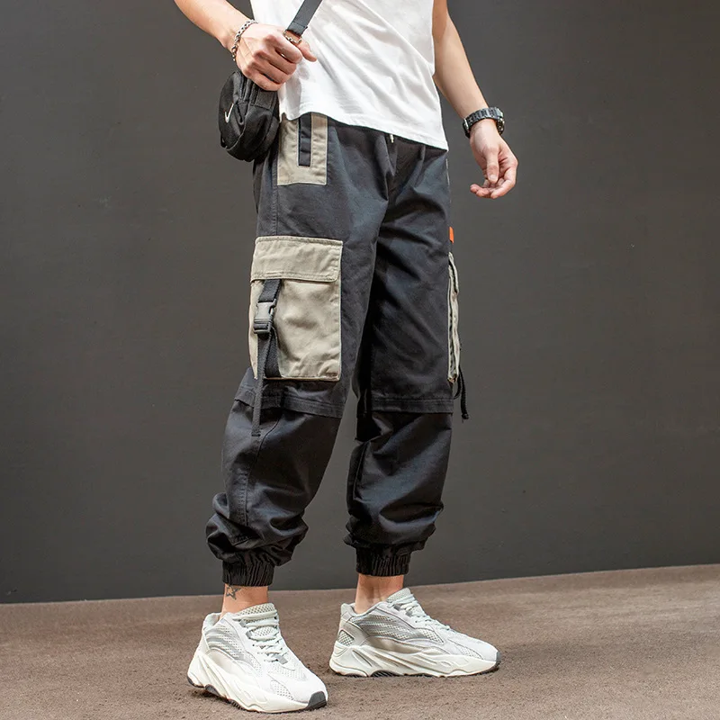 Джоггеры мужские с лентами и карманами, брюки-карго, уличная одежда 2021, повседневные тренировочные штаны в стиле хип-хоп, модные брюки в стиле Харадзюку