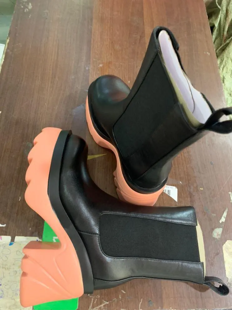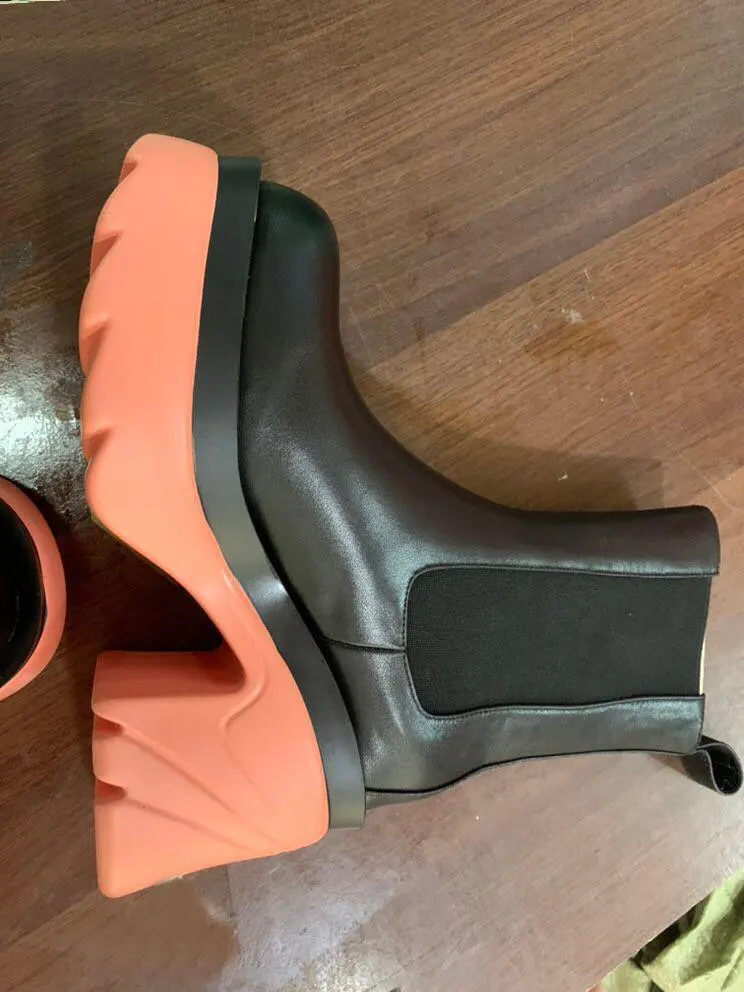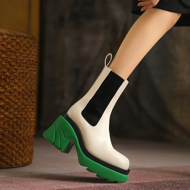 Новинка; Смешанные Цвета из натуральной кожи ботильоны ручной работы из натуральной кожи; Женские туфли на платформе с не сужающимся книзу массивным каблуком; Женские модные вечерние Рабочая женская обувь