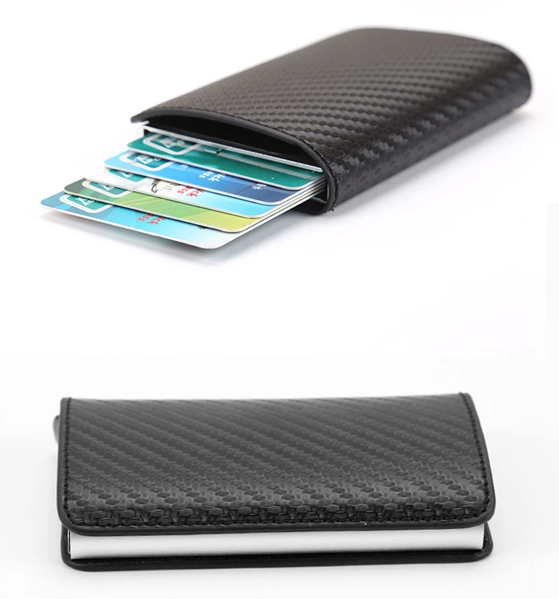EZONE кожа Бизнес держатель для карт Бизнес кошелек Анти-кражи и антимагнитными свойствами RFID Бумажник для кредитных автоматическое извлечение карты Чехол в подарок