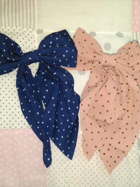 Заколка для волос женская в горошек, с бантом, Длинная лента, шифоновая заколка для волос