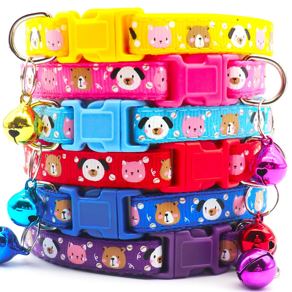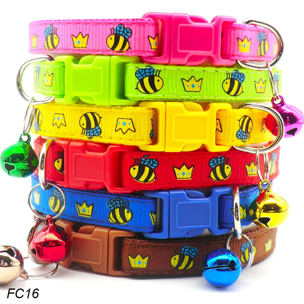 Оптовая продажа 100 шт. ошейник для домашних животных смешанные цвета ожерелье для кошек мультипликационный принт Регулируемый воротник ошейник для кошек и щенков тяговое позиционирование животное хорошее