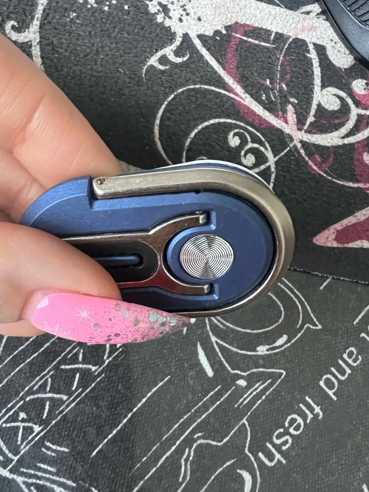 Крепится к телефону, чтобы предотвратить падение телефона. Простой