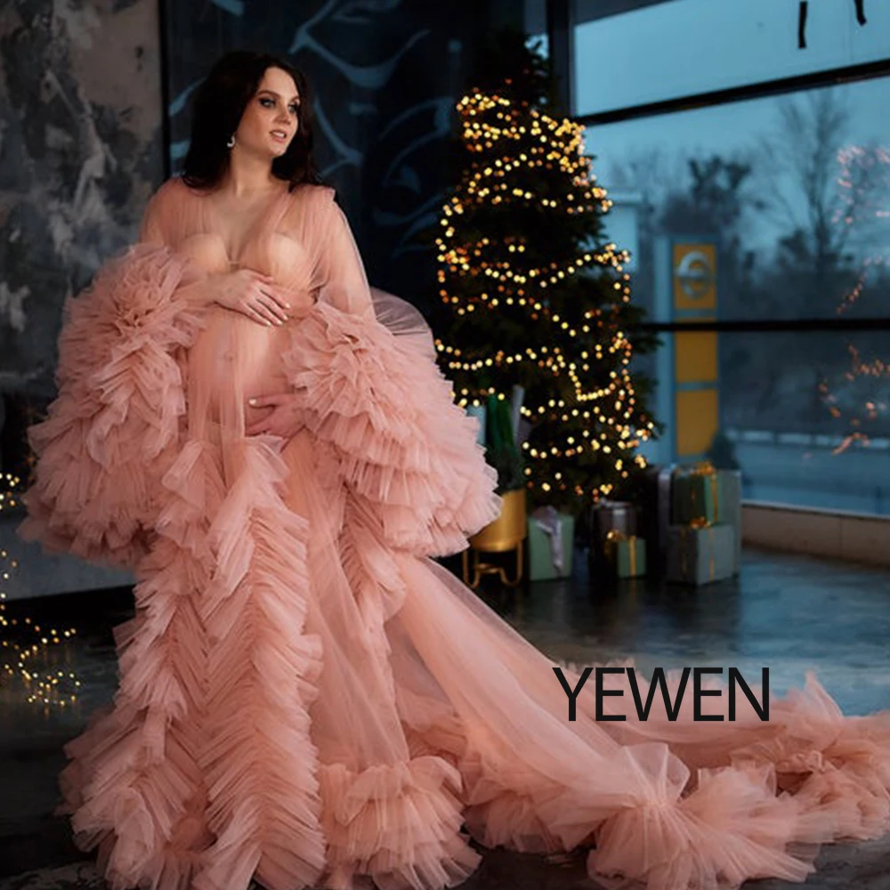 Тюлевое платье с длинным рукавом платье для беременных 2021 просвечивающее платье для фотосъемки для беременных женщин большие размеры YEWEN на заказ