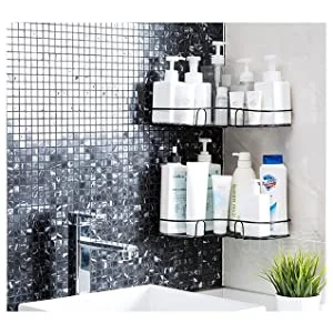 [Легко установить]-На этой полке для душа используется бесследный клей для установки без перфорации, что позволяет избежать проблем с перфорацией и повреждением стены. При установке выдерживает 11 фунтов, эквивалентно 10 бутылкам 250 мл воды. Рекомендуется использовать после 24 часов установки.