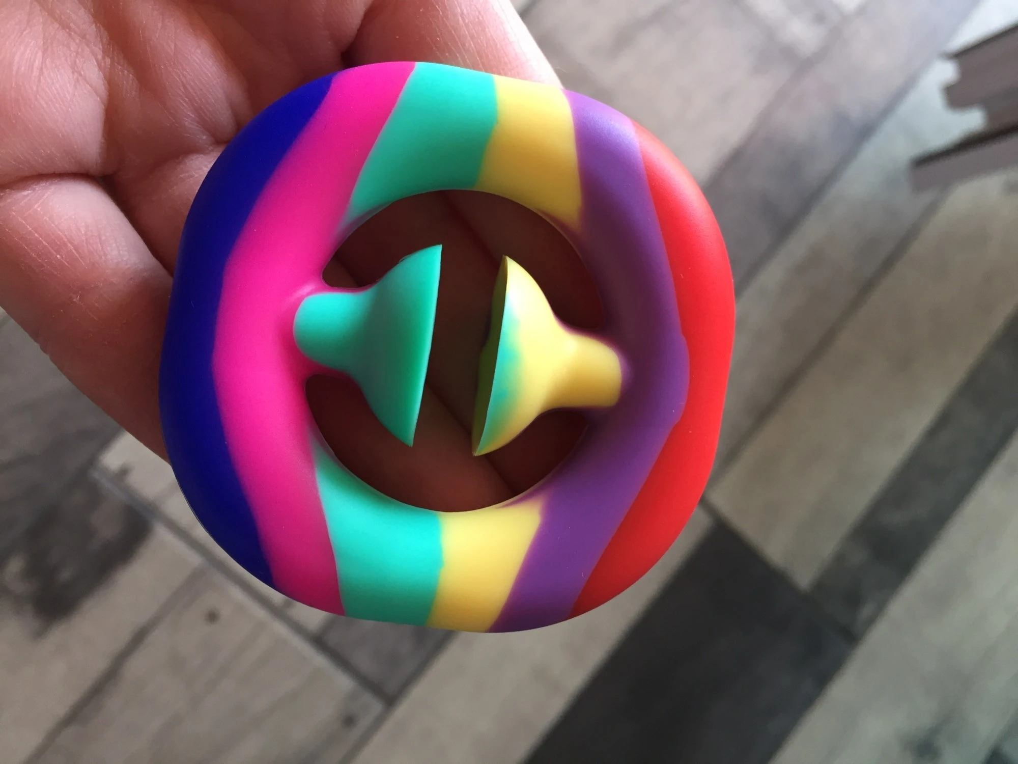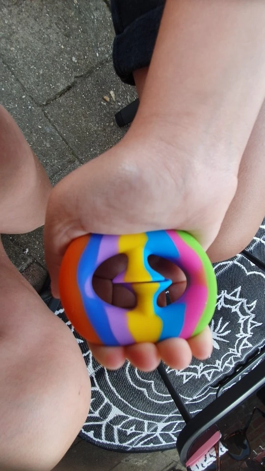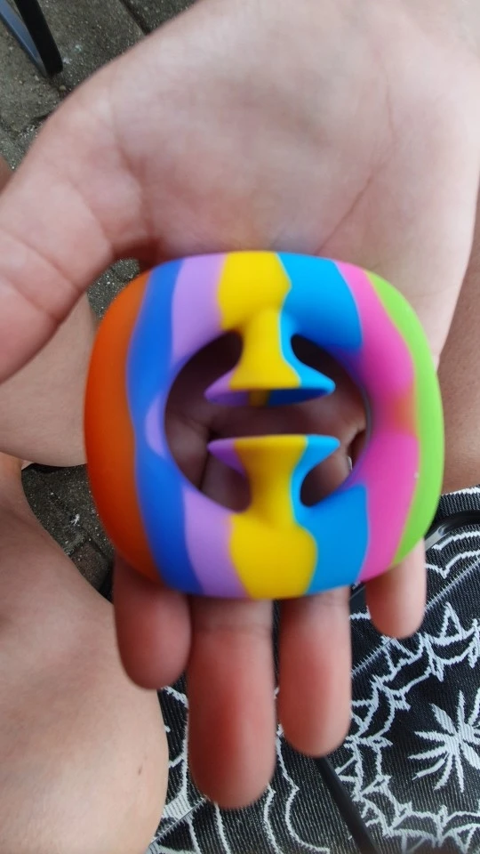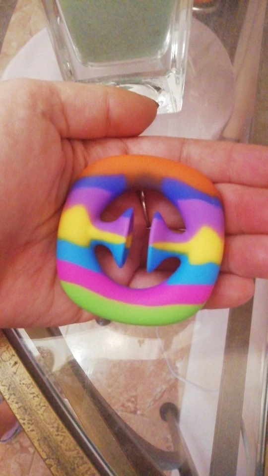 Обожаю эту вещь! Вы получите тренировку для рук, так как требуется немного мускулов, чтобы сжать и сделать это удовлетворяющим POP. Я думаю, что маленькому ребенку будет слишком трудно сжать пальцы. Он достаточно мал, чтобы поместиться в вашем кармане, а цвета такие красивые. Это действительно круто, так что это не игрушка, которую я возьму в офис.