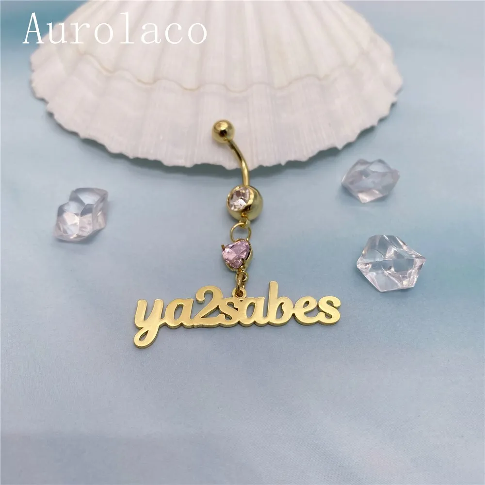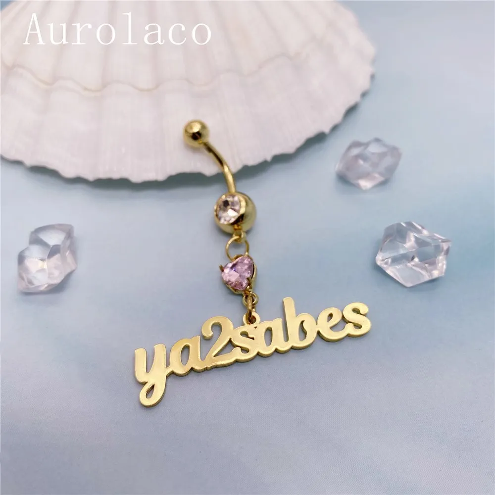 AurolaCo пользовательское имя кольцо для пупка с бабочкой на заказ,...