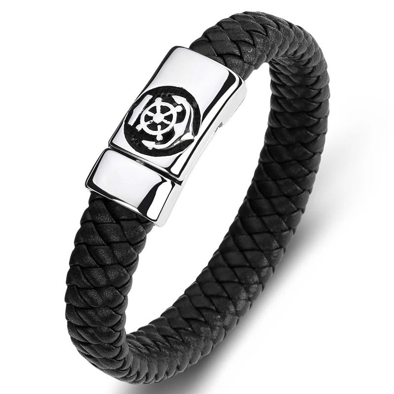 Браслет мужской кожаный плетеный, из нержавеющей стали браслеты с ч...