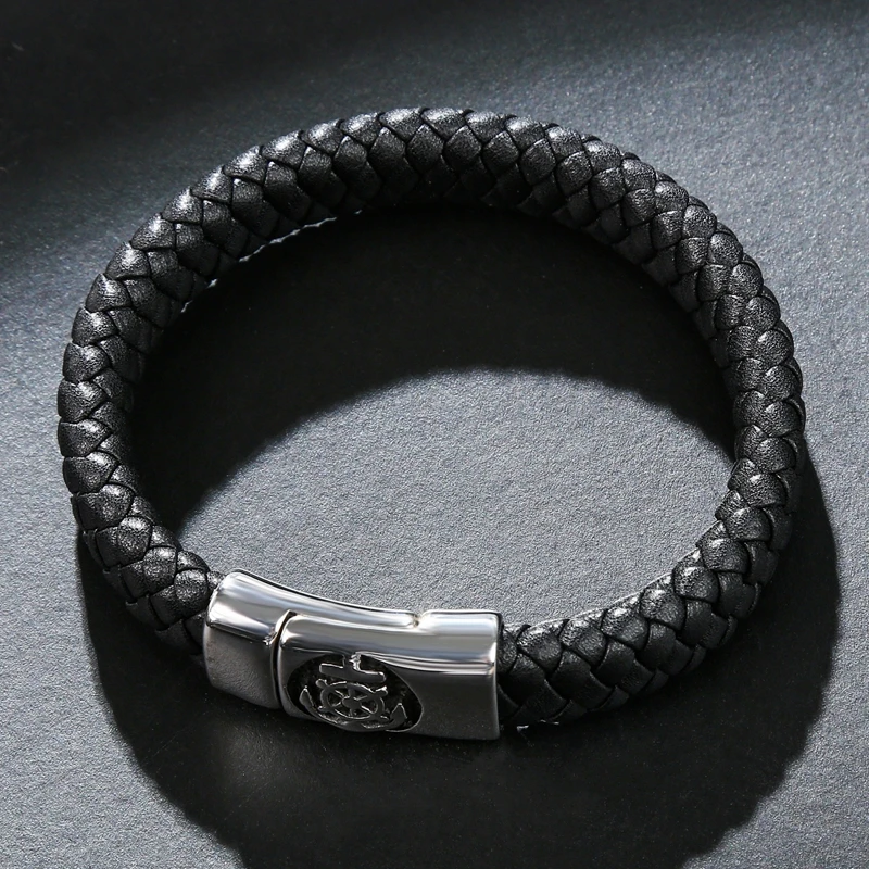 Мужской кожаный плетеный браслет с магнитной застежкой