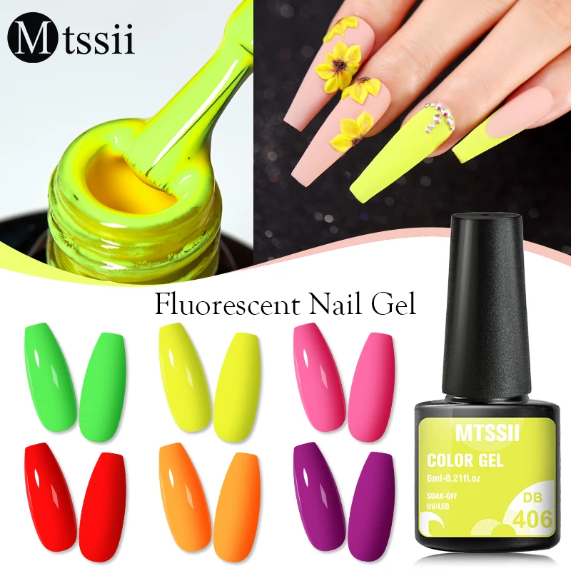Флуоресцентный цветовой гель Mtssii для дизайна ногтей, полуперманентный отмачиваемый УФ светодиодный лак с базовым верхним слоем