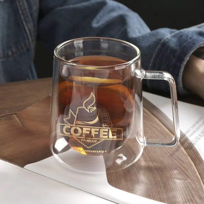 Двойная кофейная чашка, термостойкая и устойчивая к ожогу кружка для напитков в европейском стиле с ручкой, прозрачная чашка для молока, Изолированная стеклянная чашка