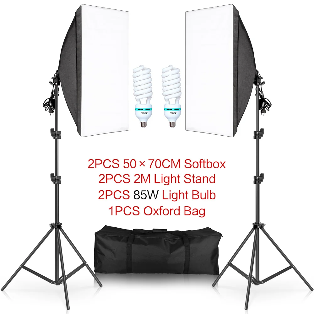 Набор софтбоксов для фотосъемки 50x70 см, профессиональные и аксессуары, 2 оссветильник ных стойки, 2 софтбокса для фотокамеры