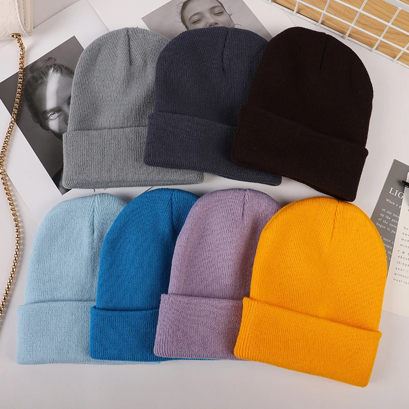 Модные однотонные вязаные облегающие шапки, зимние теплые лыжные шапки, мужские и женские разноцветные шапки, мягкие эластичные шапки, спортивная шапка