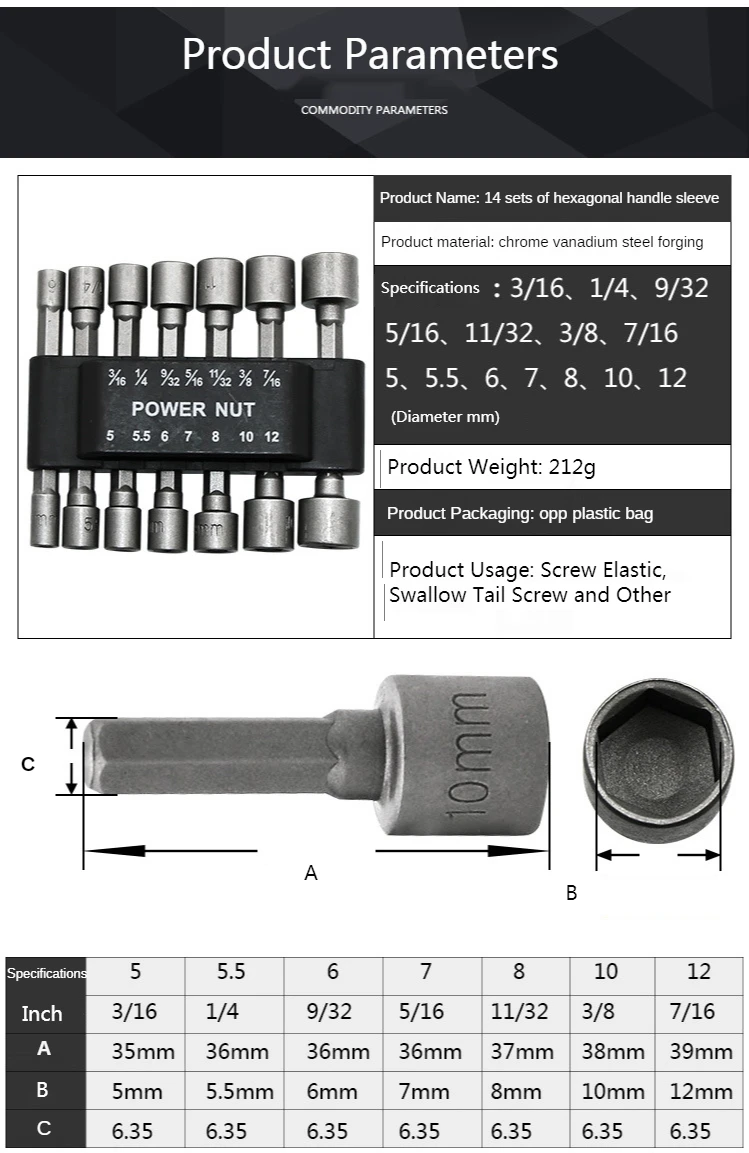 Model9-Piece Hexagonal Handle Sleeve, 14-Piece Hexagonal Handle Sleeve