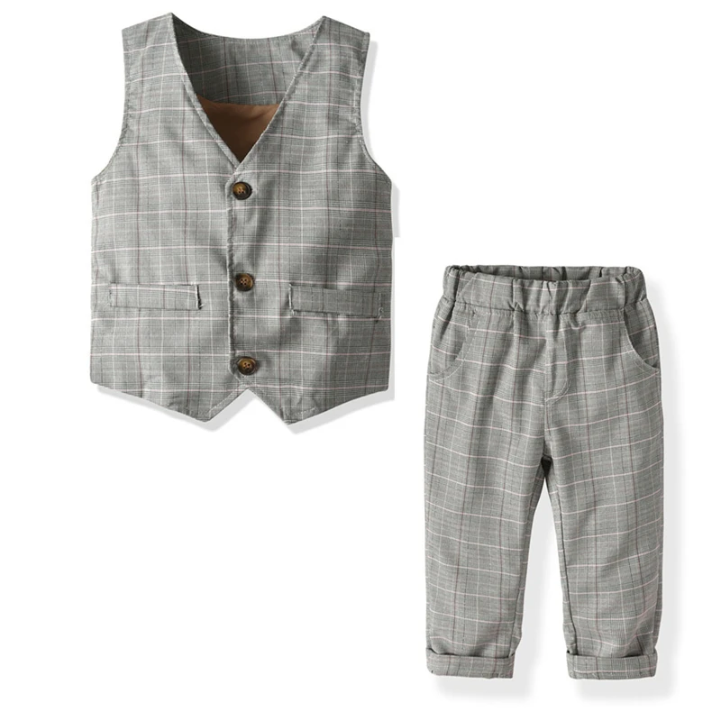 Осенняя одежда для маленьких мальчиков блейзеры для мальчиков Комплекты одежды; Жилет, рубашка и брюки, детские вечерние костюмы клетчатое платье для детей ясельного возраста задний фон для детской и свадебной форма