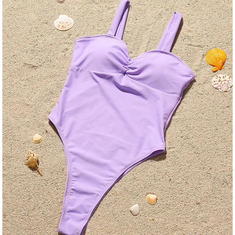 Женский слитный купальник, с бюстгальтером пуш-ап, со складками, пляжная одежда, 2021
