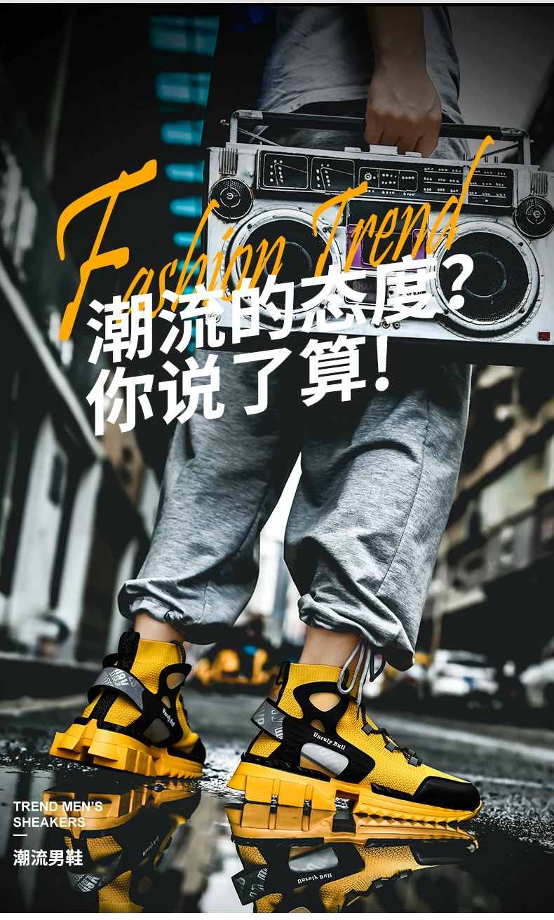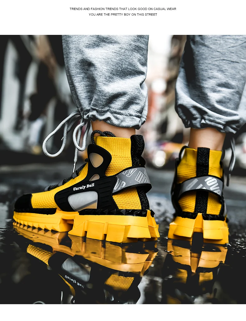 Новые желтые носки, мужские повседневные дышащие высокие кроссовки, мужские светоотражающие кроссовки ночного размера плюс, мужская повседневная обувь