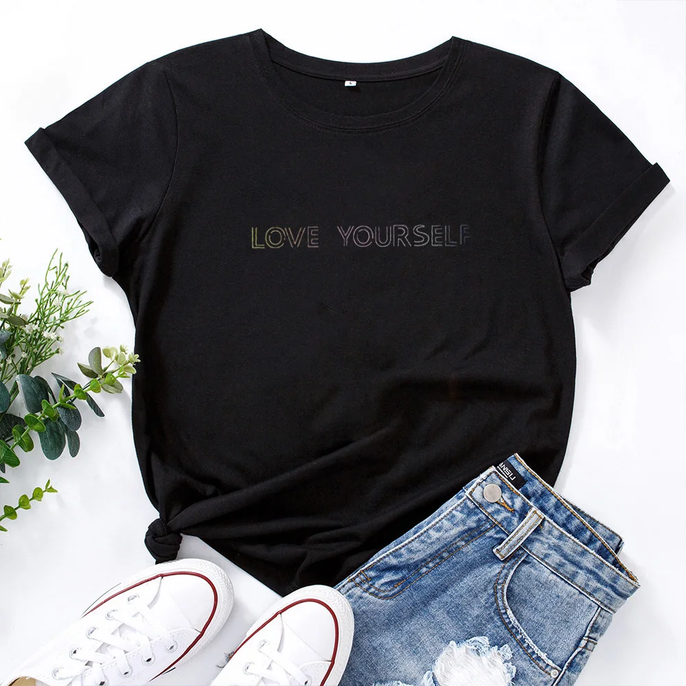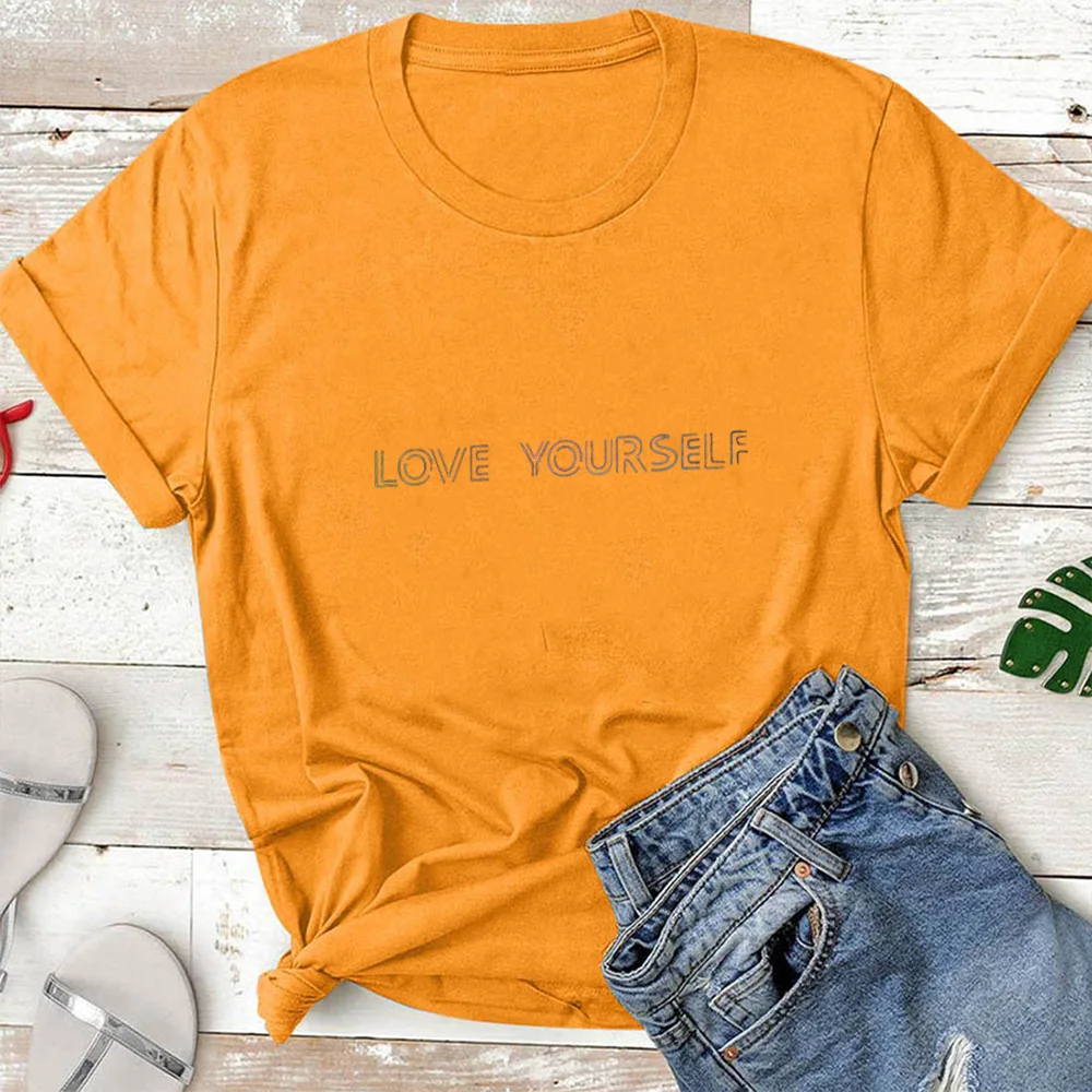Футболка женская Свободная с надписью LOVE YOURSELF, модная простая Удобная рубашка с надписью
