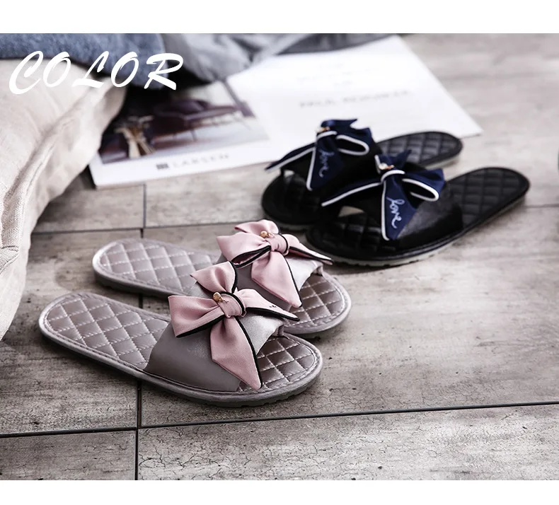 Женские летние Сатиновые шлепанцы с бантом, домашние тапочки из ЭВА, простая Корейская версия, всесезонные дышащие шлепанцы