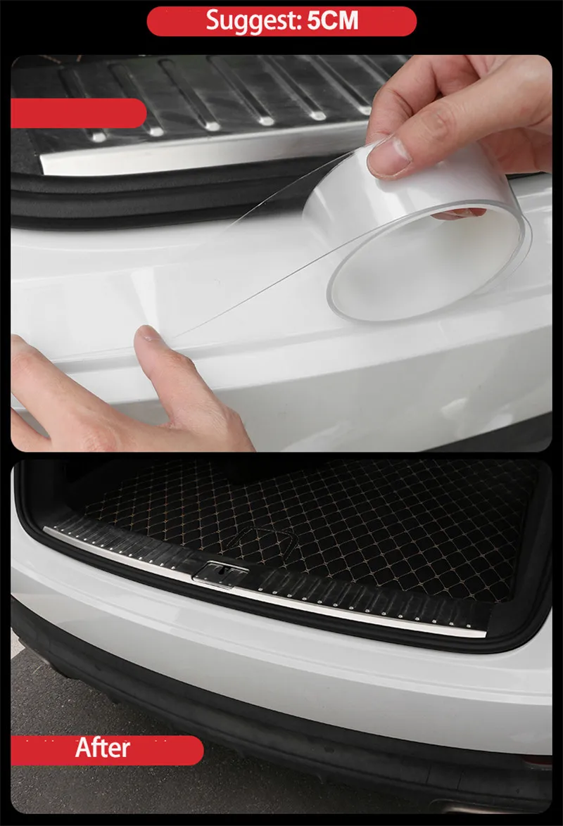 【Обновленный материал 】 эта защита для дверей автомобиля изготовлена из высококачественного силиконового полимерного материала, термостойкого/холодного сопротивления, износостойкого, антивозрастного, водонепроницаемого и УФ-сопротивления. Твердость 60(Shore A), высокое удлинение.【Основные функции 】 защита дверного порога эффективно защищает задний бампер автомобиля при погрузке или разгрузке багажа, продуктов, инструментов коробки и так далее, он предотвращает неприятные царапины и обеспечивает защиту. Также его можно использовать для покрытия любых существующих царапин, повреждений краски.【Длина * ширина 】 подходит для всех автомобилей с задней защитой, эта Автомобильная дверь очень прочная, гибкая и гибкая, клейкая лента идет под отделкой, просто приклеивается к подоконнику, легко устанавливается.【Легко установить 】 защитная полоса для автомобильного бампера может быть свободной деформацией и бесплатным обрезанием. Они легко устанавливаются без инструментов. Универсальный подходит для большинства автомобилей.