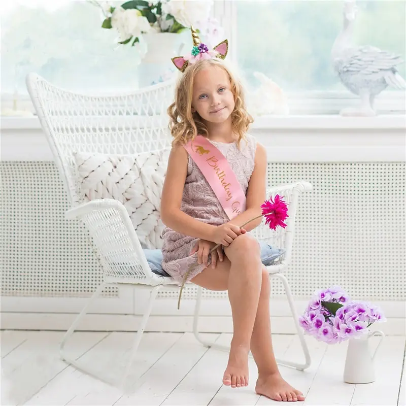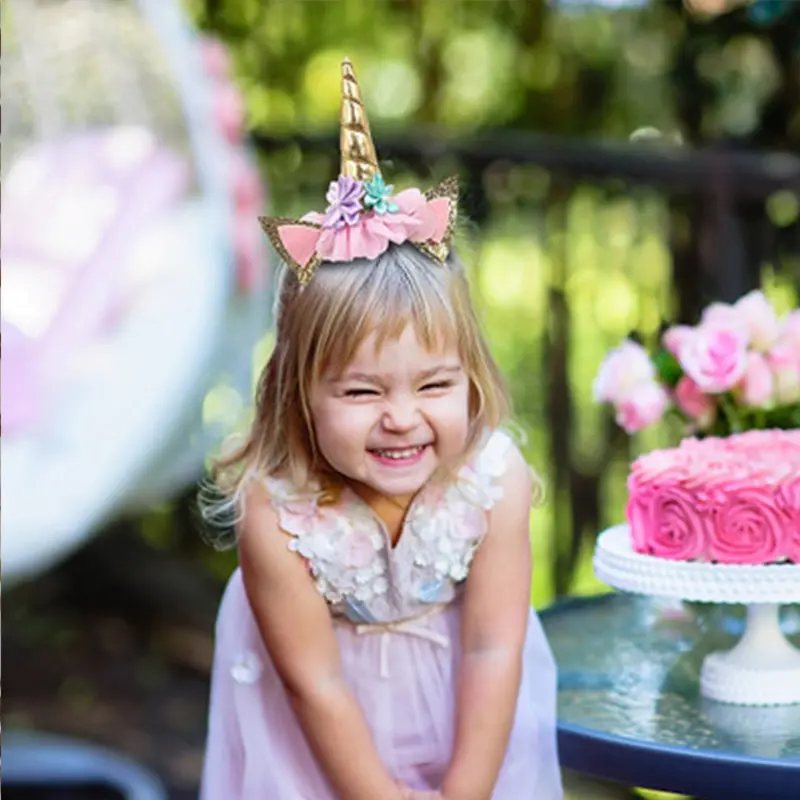 Повязка для волос золотого и серебряного цвета с рогами, цветами, единорогом, украшения для дня рождения, Детская корона для девочек, повязка на голову, сувениры, товары