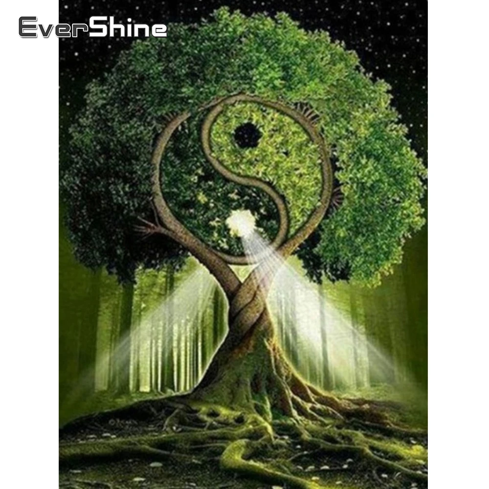 EverShine, алмазная живопись 5D DIY Бриллиантовая вышивка с изображением дерева камни в форме ромба Тай Чи Стразы мозаика живописные вышивки крестом Настенный декор