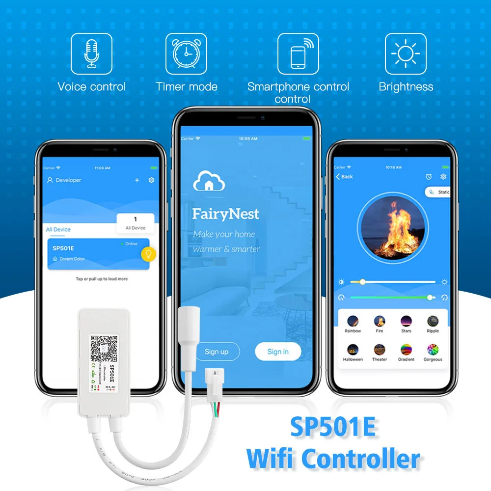 DC12V WS2811 30 светодиодныйм 60 СветодиодныйM Адресуемых СВЕТОДИОДНЫЙ полосы 5050 RGB Мечта полный Цвет SP501E WI-FI управления через приложение и светодиодный набор снаряжения