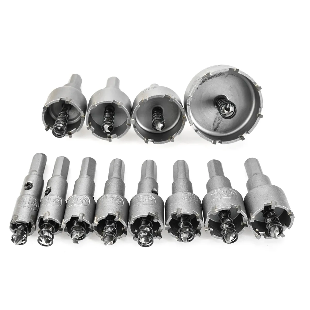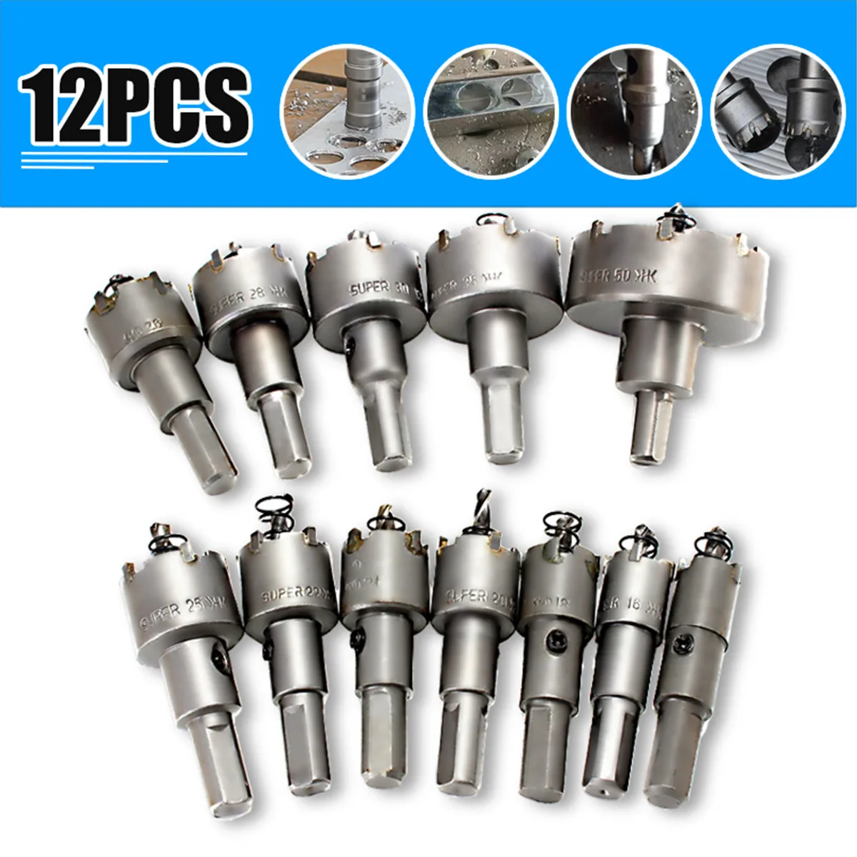 Drillpro 12 шт.компл. 15 мм-50 мм набор зубцов для отверстий в металле набор сверл из сплава нержавеющей стали резак для дерева металлический резак инструмент