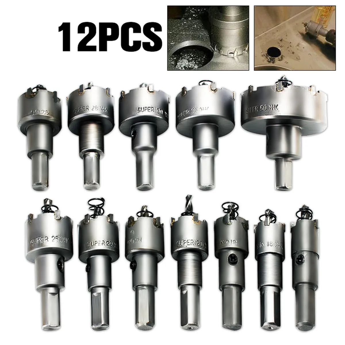 Набор бит для дрели Drillpro, комплект из 12 насадок 15-50 мм для отверстий в металле, из нержавеющей стали, резак для дерева, универсальный инструмент для резки металла