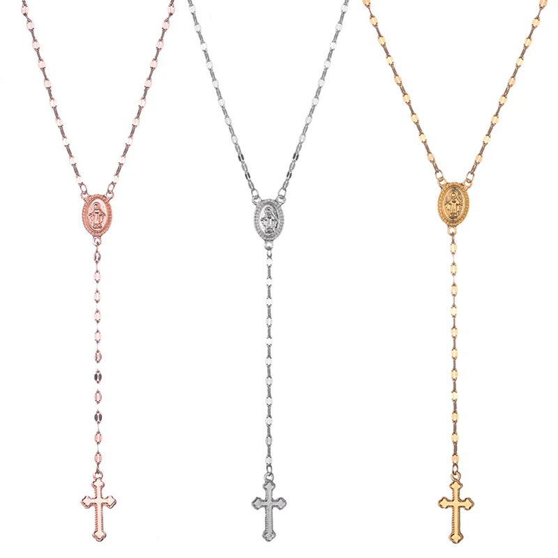 Romad модная подвеска крест ожерелье для женщин розовые, золотые, серебряные Длинная цепочка мужские четки оптом по низкой цене ожерелье религиозное Ювелирное Украшение