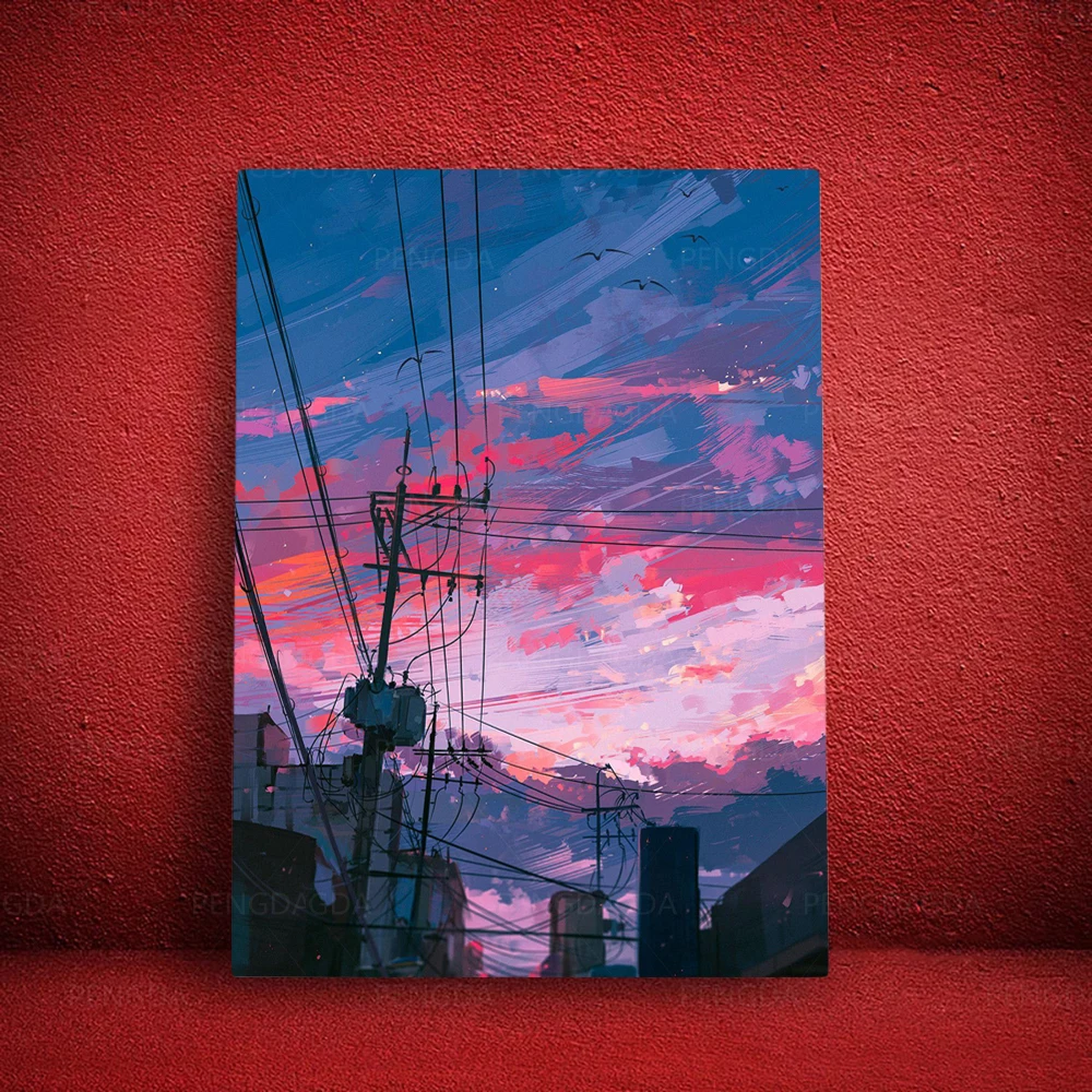Модульный постер на холсте, с изображением заката, неба, стены, эстетика, пейзаж аниме, украшение для дома, спальни