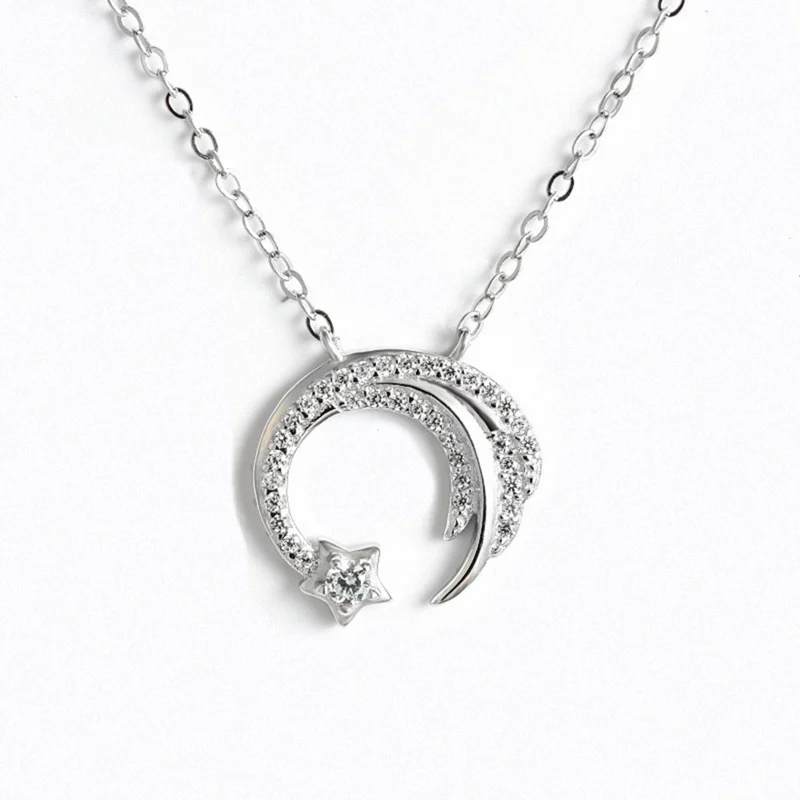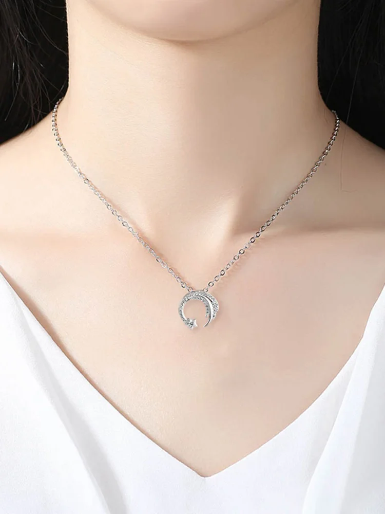 Луна, Звезды серебро Цвет метеор сад скольжения падения Метеор микро-инкрустированные многослойное украшение на шею в темперамент Женский Цепочки и ожерелья