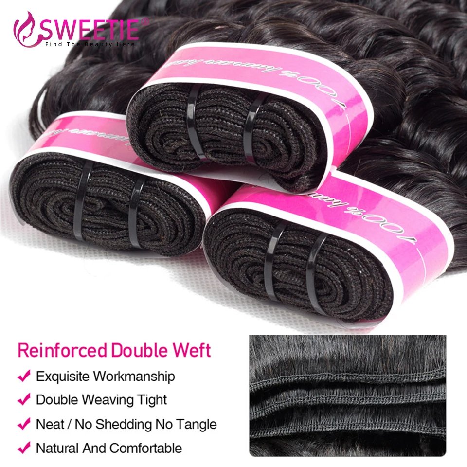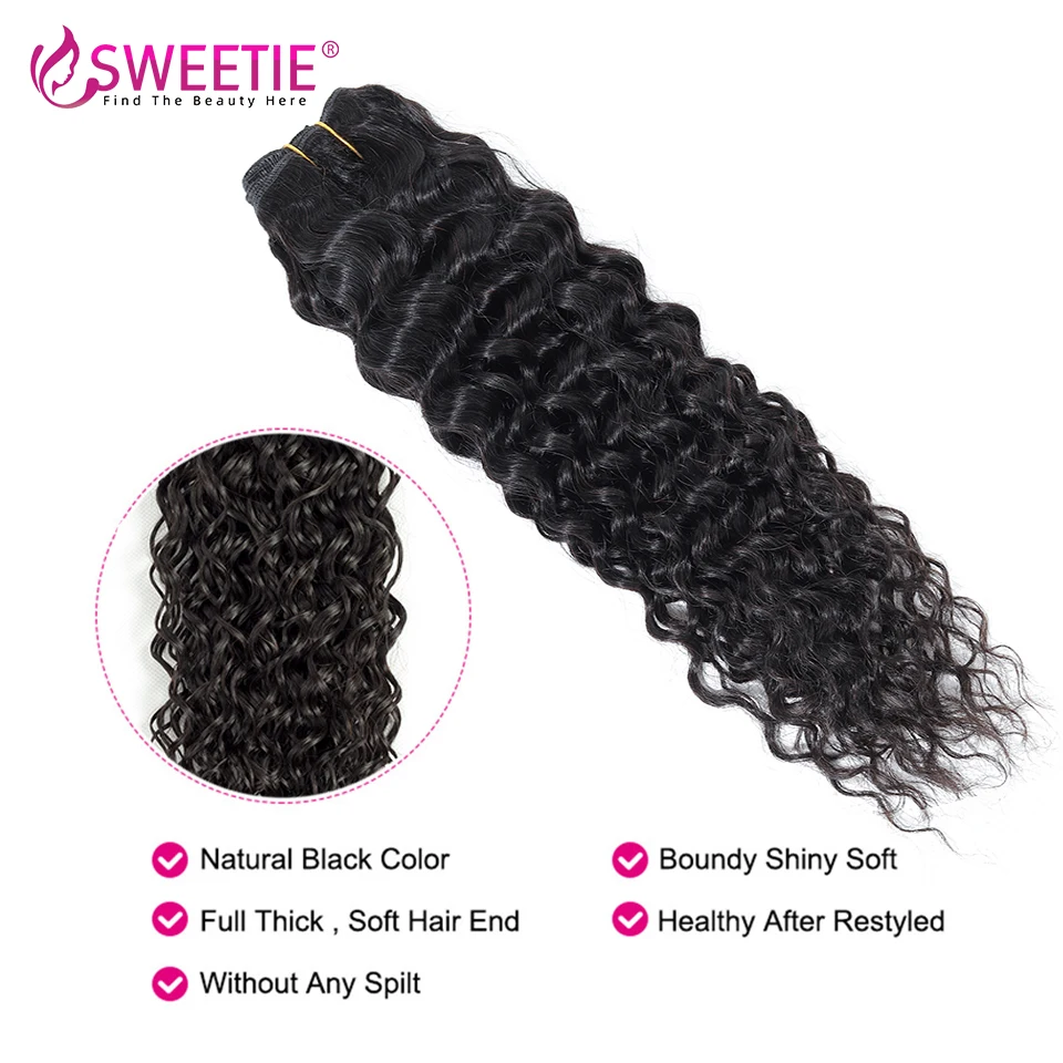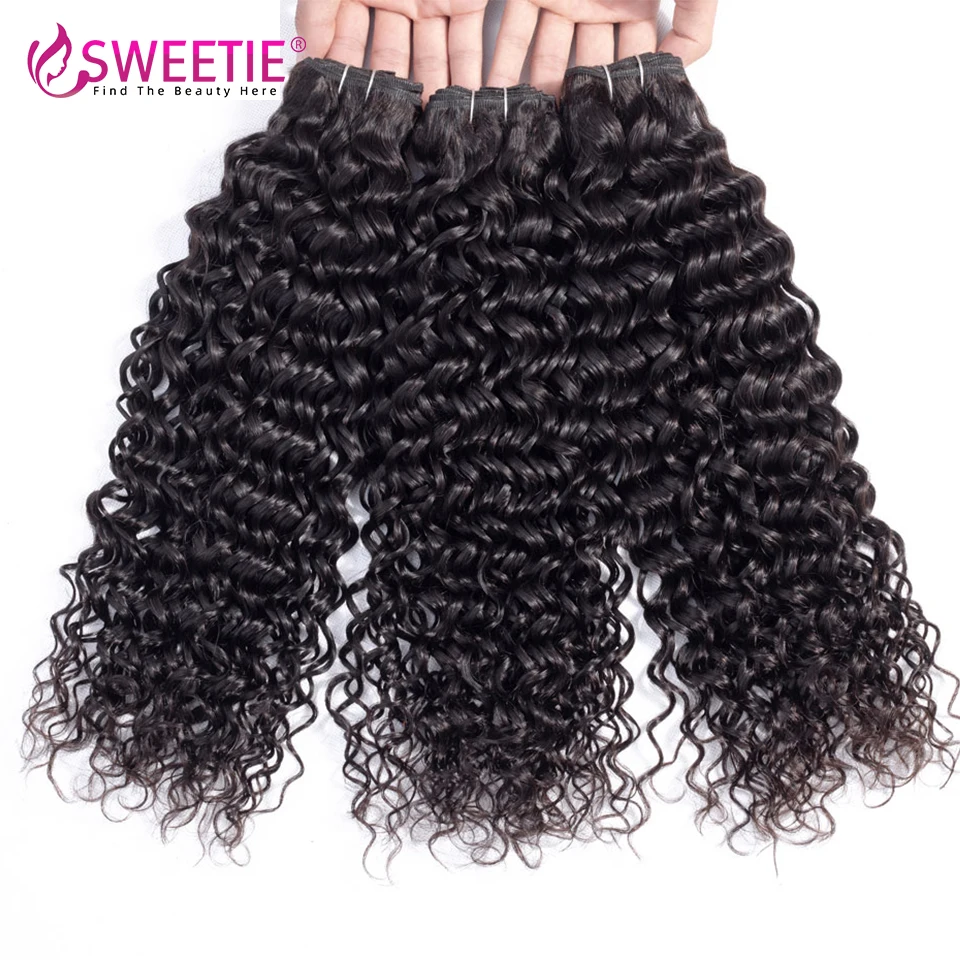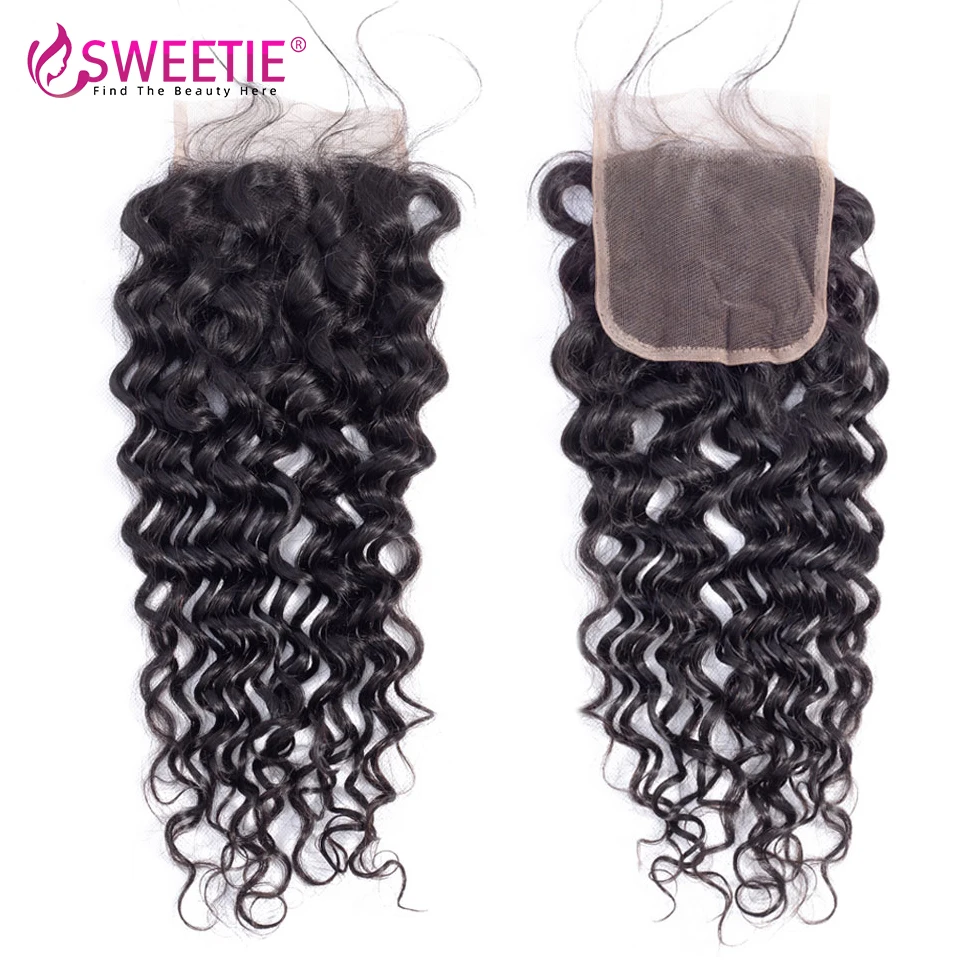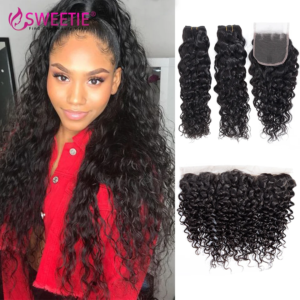 Милая 3 или 4 пряди бразильские волосы волна воды с закрытием, Remy 4x4 13x4 кружева фронтальные с натуральные кудрявые пучки волос пряди