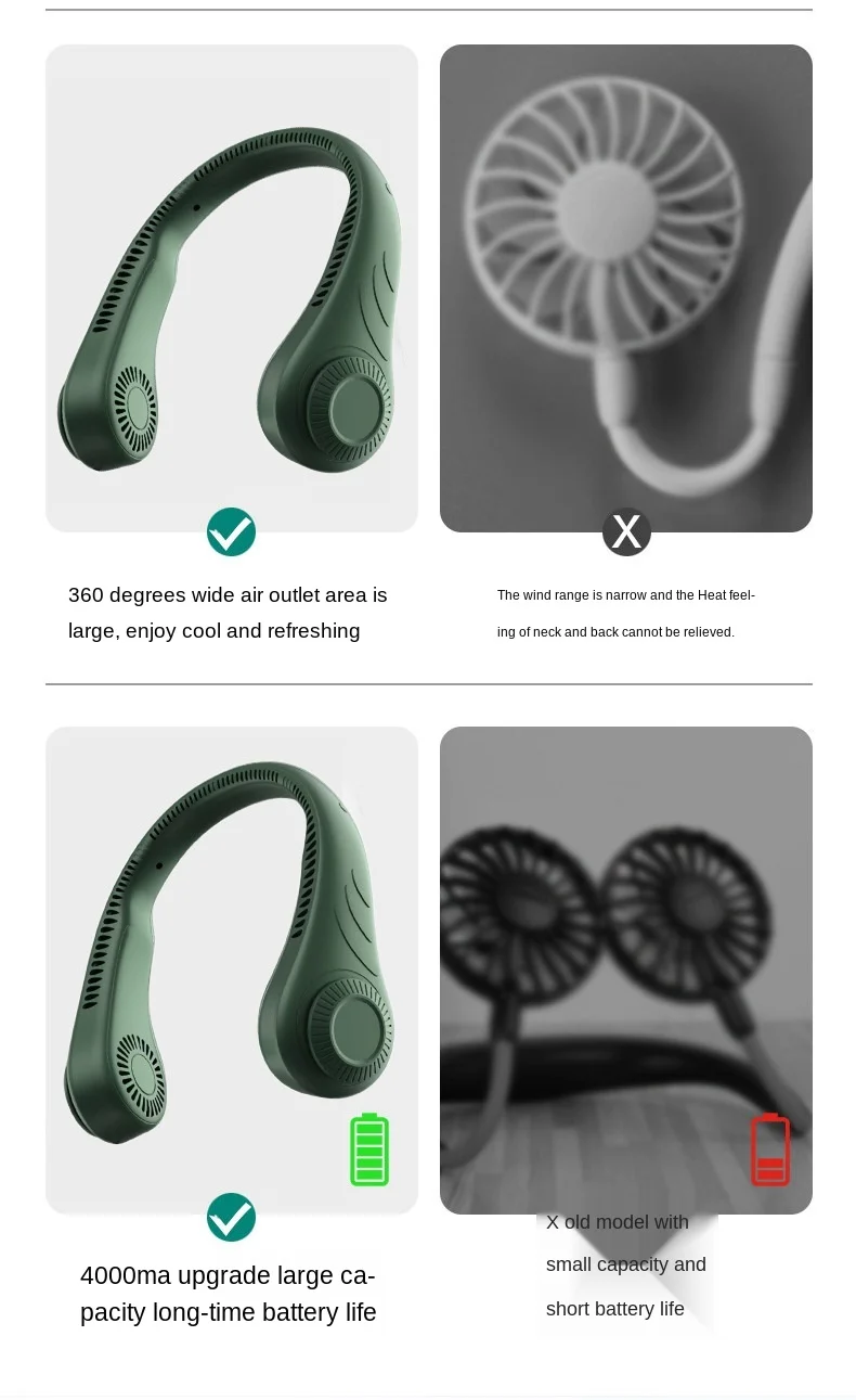 Безлопастной подвесной мини-вентилятор для шеи, 4000 мАч, USB Перезаряжаемый вентилятор, бесшумные спортивные вентиляторы, бесшумный охлаждающий вентилятор для шеи