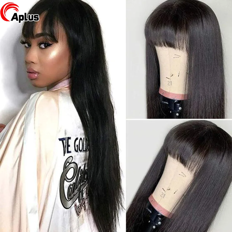 Парик блонд Омбре из человеческих волос с челкой, парик из кости пр...
