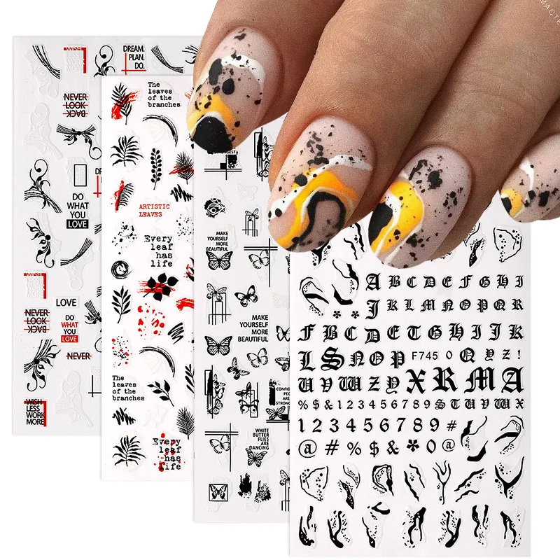 Наклейки для ногтей в форме листьев бабочки, черные и белые наклейк...