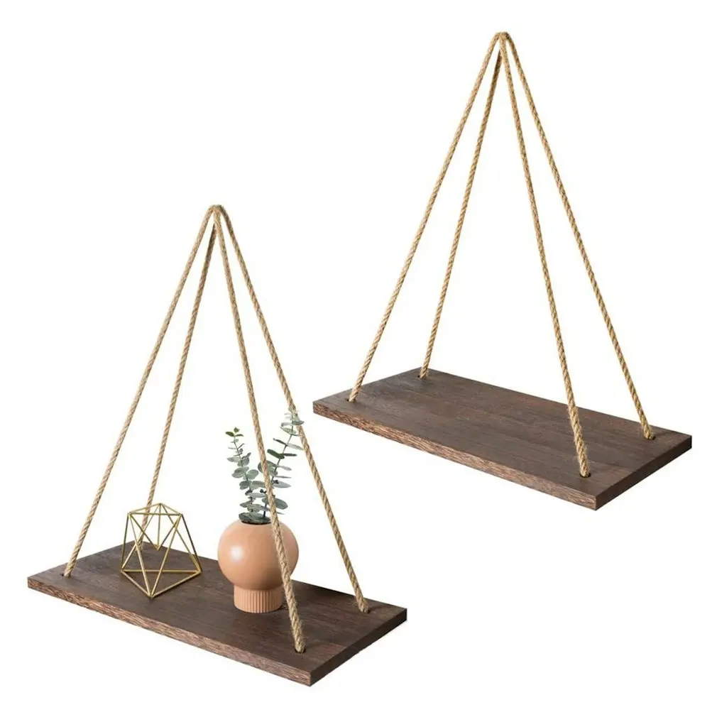 Деревянный веревочный Подвесной Настенный поднос для цветочного горшка с плавающими полками для украшения дома
