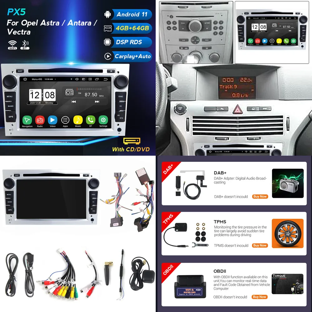 Автомобильный GPS-навигатор, проигрыватель на Android 11, 4 Гб ОЗУ, 64 Гб ПЗУ, для Opel Vauxhall Astra H G J Vectra Antara Zafira Corsa Vivaro Meriva Veda, типоразмер 2 DIN