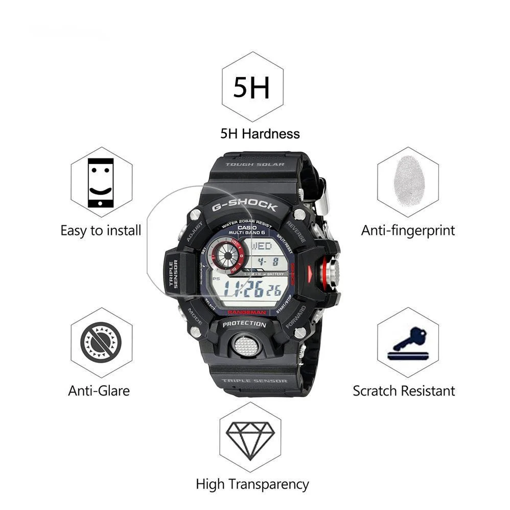 Комплект из 3 предметов, для объектива с оптическими зумом Casio GW9400 Для Мужчин's GShock спортивные часы Экран Защитная пленка для GW-9400-1CR GW-9400-3CR GW-9400J-1JF Анти-Царапины пленка