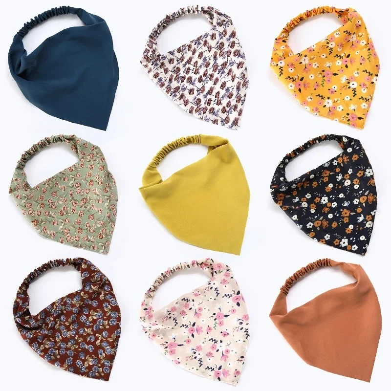 Повязка для волос с цветочным принтом, треугольный головной платок ...