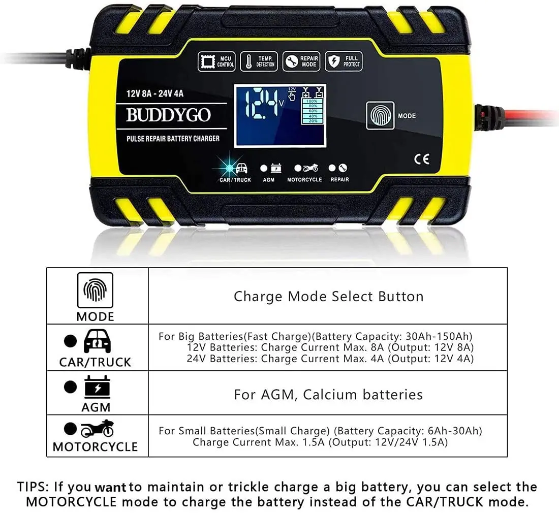 Зарядное устройство Amazo, 12 В, 24 В, 6 А, автоматическое умное зарядное устройство для аккумуляторов мотоциклов, зарядное устройство для аккумуляторов AGM