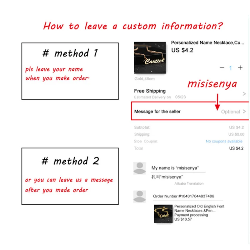 ②: Очень важная вещь после оплаты заказа, оставьте сообщение, сообщите мне имя