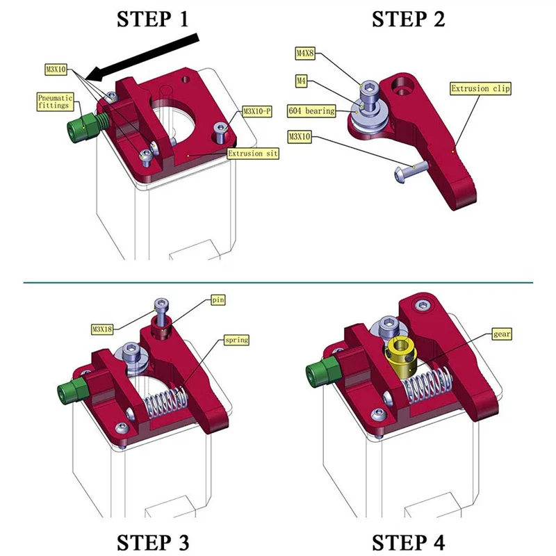 Преимущество: металлический экструдер имеет более сильное давление, чтобы толкать нить в сопло принтера, так что улучшит производительность принтера. И наши наборы экструдеров имеют регулируемый болт, чтобы вы могли регулировать давление экструдера при необходимости.