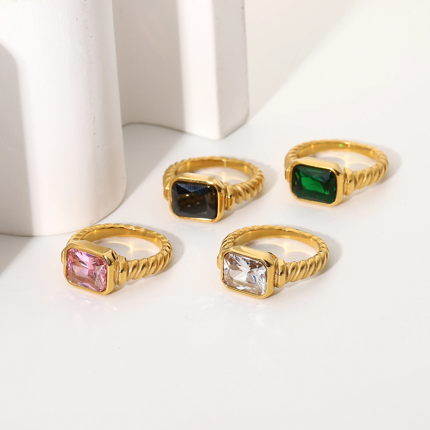 Французские элегантные прямоугольные кольца из нержавеющей стали с изумрудным цирконием для женщин девушек круассан витые Спиральные кольца ювелирные изделия