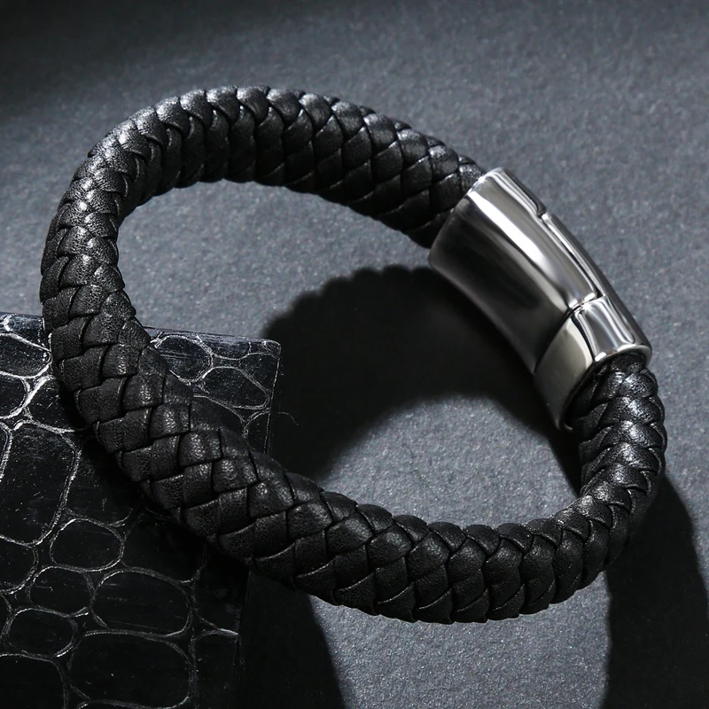 Браслет мужской кожаный плетеный, из нержавеющей стали, магнитный, ...
