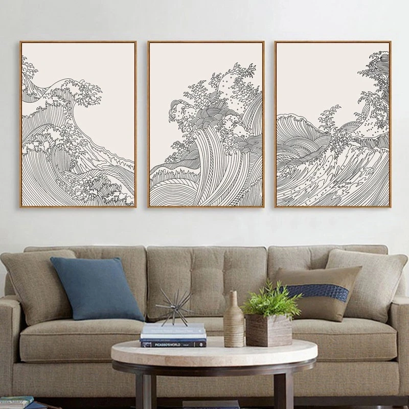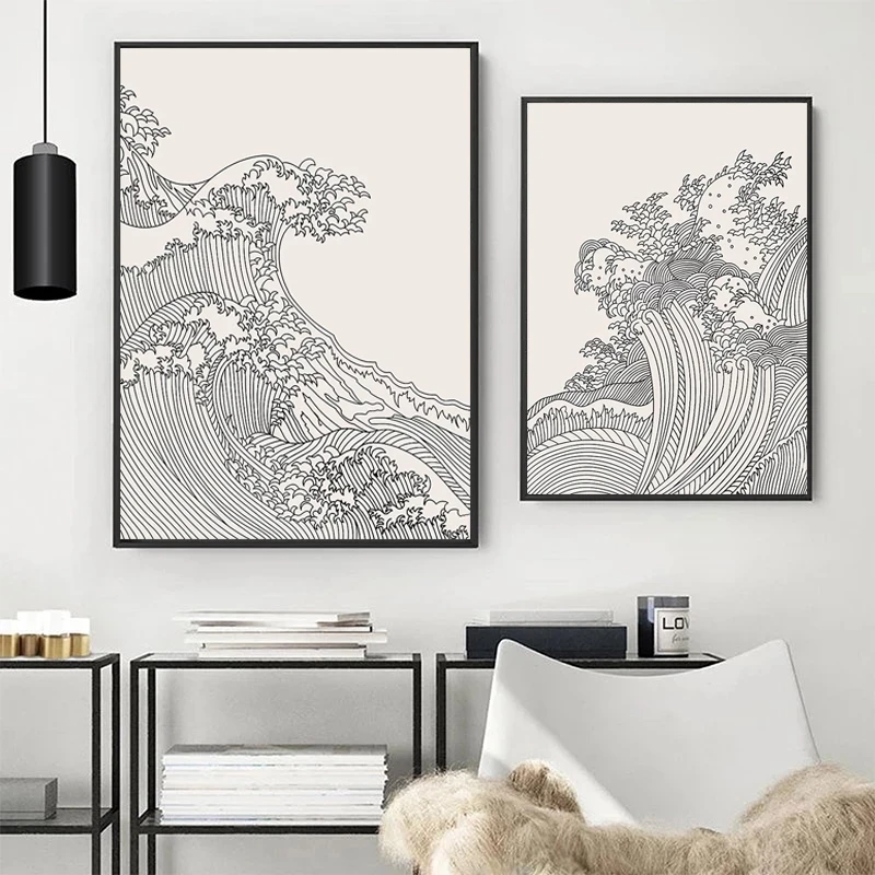 Настенный декор в японском стиле, морские волны, абстрактные линии, Картина на холсте, Декоративные плакаты, картины для интерьера гостиной