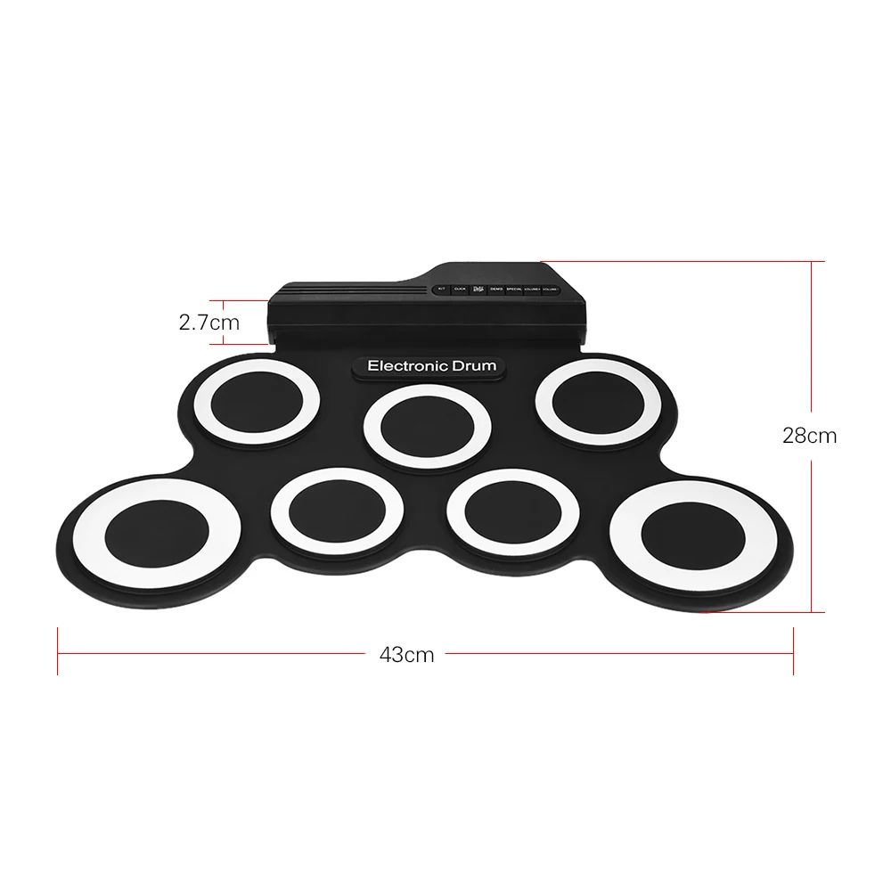 Электронный барабан, цифровой USB заряжаемый 7 колодок, рулонный по...