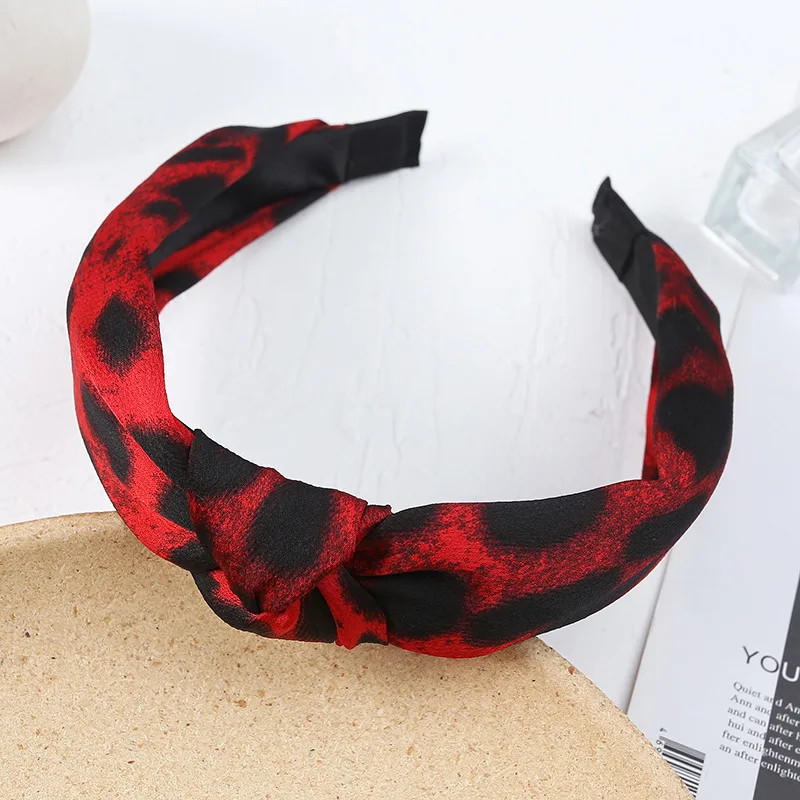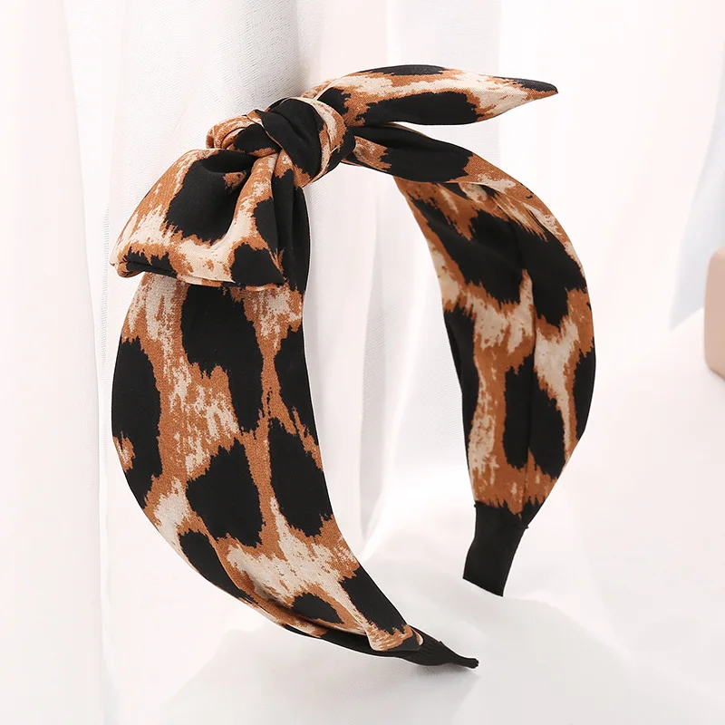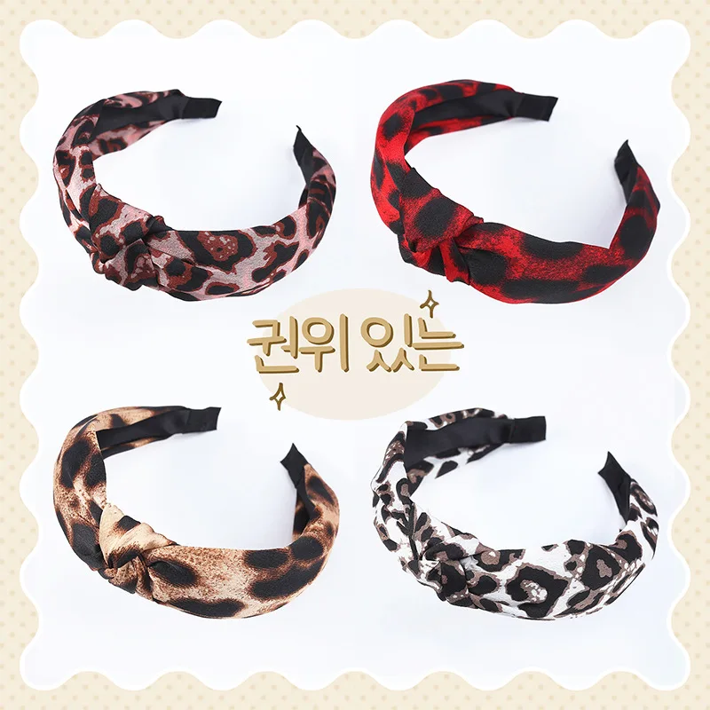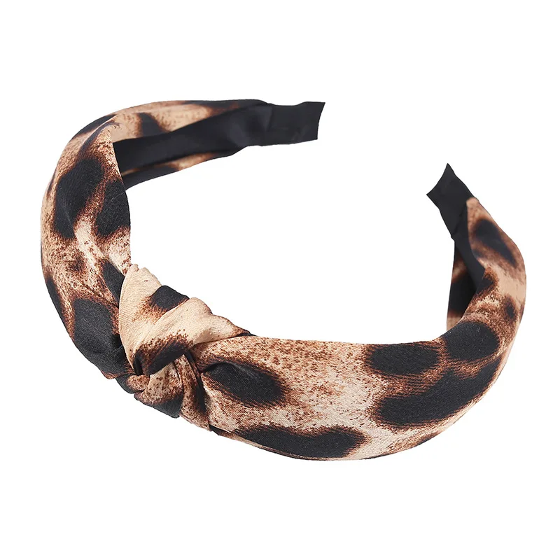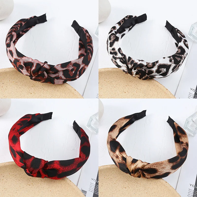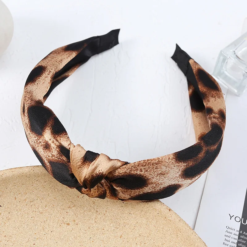 Обруч для волос женский с леопардовым принтом, хлопковая повязка на голову с узлом, хлопковый аксессуар для волос с леопардовым принтом, FG097