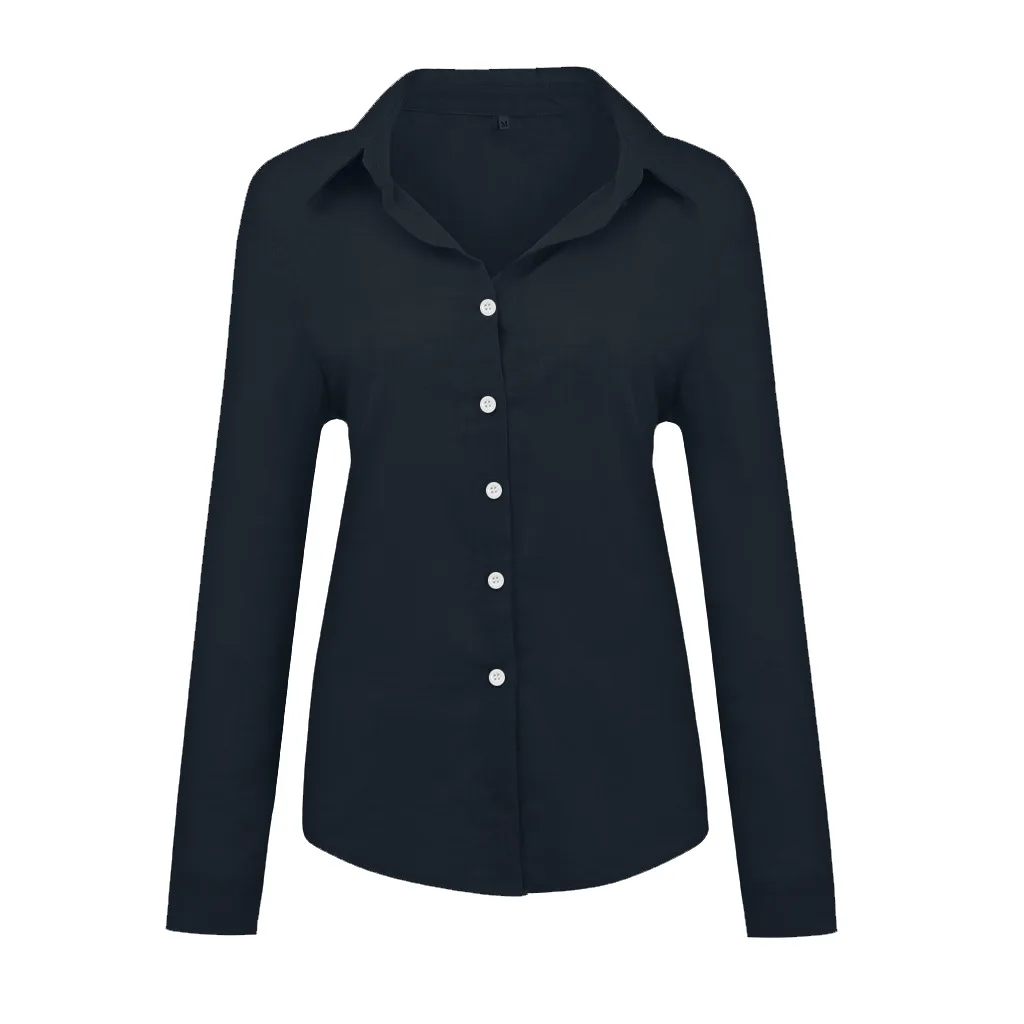 Женская свободная рубашка с воротником на пуговицах и длинным рукавом
