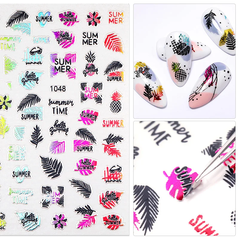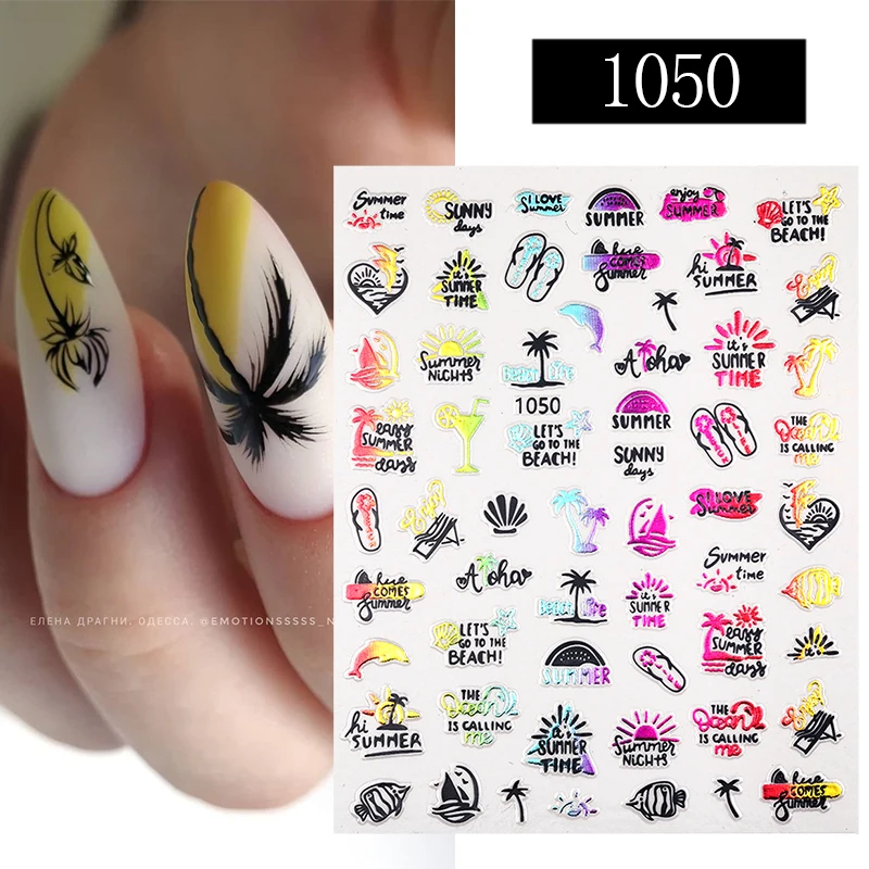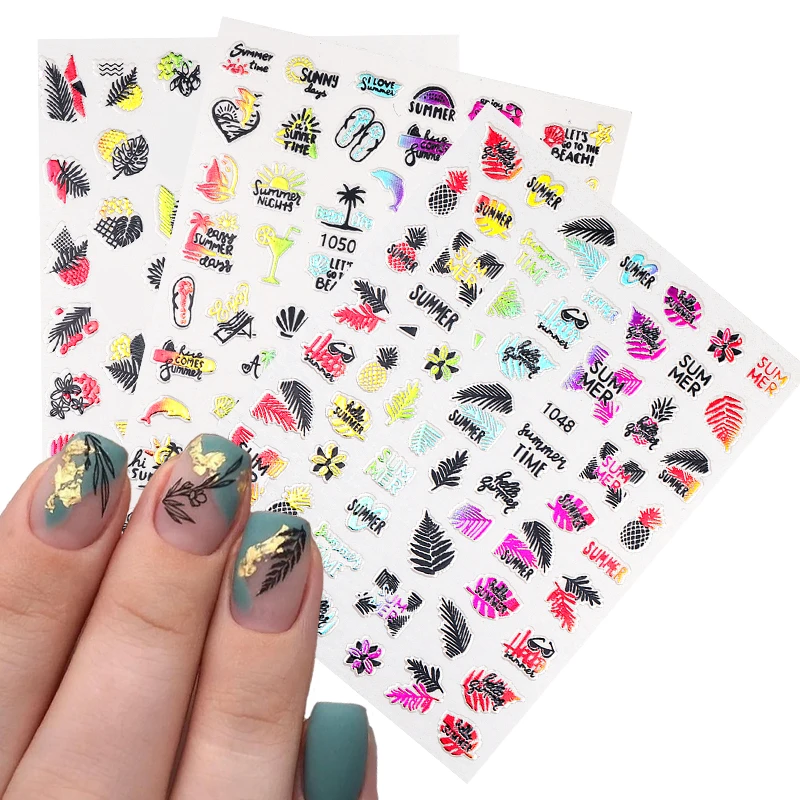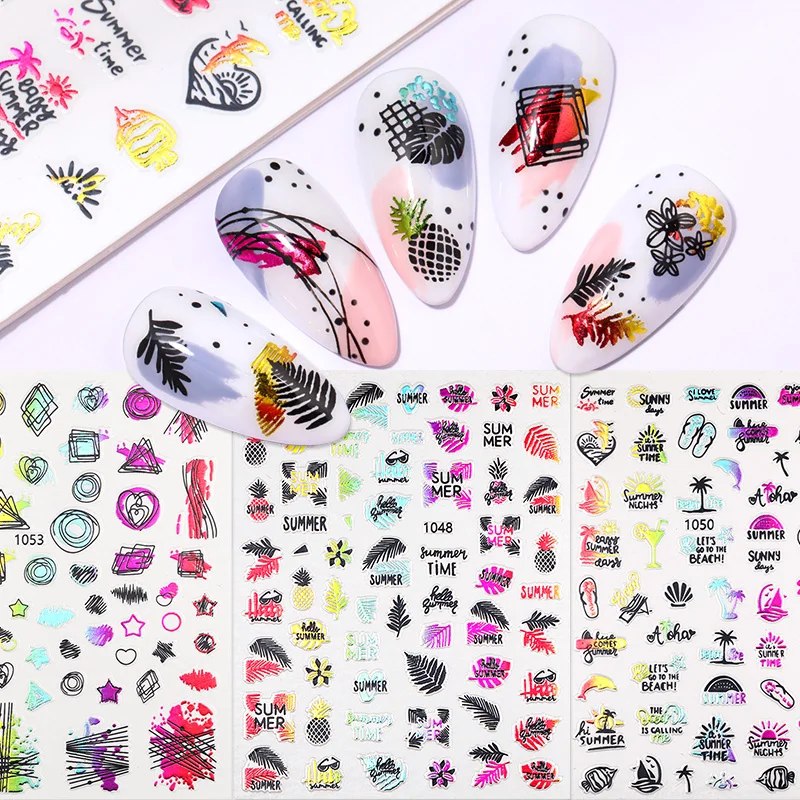 1 шт. геометрические Слайдеры для ногтей, 3D наклейка, клейкие переводные наклейки, наклейки, фольга, цветы, тропические растения, изображение, украшения для дизайна ногтей