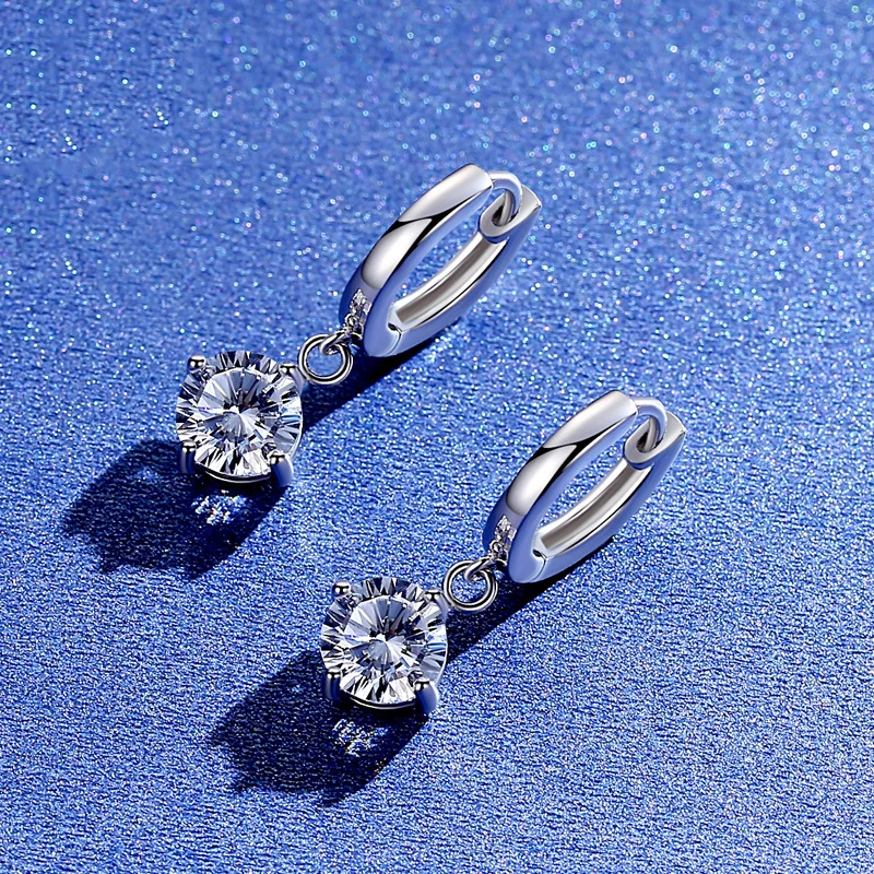 Серьги-подвески BOEYCJR из серебра 925 пробы с муассанитом, 1 карат